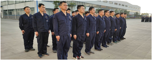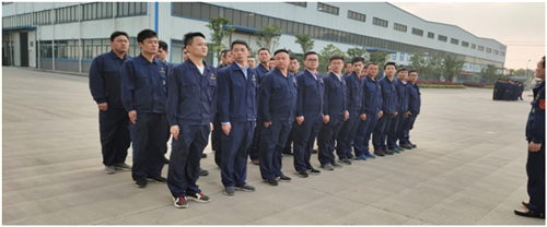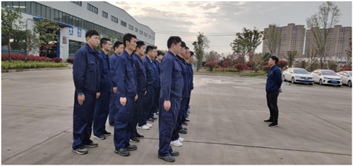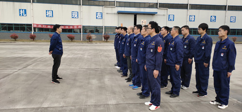 涂層事業(yè)部在經(jīng)理胡勝濤的帶領(lǐng)下軍訓(xùn)現(xiàn)場: