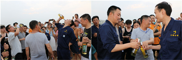 在燒烤活動(dòng)中我們員工進(jìn)行了啤酒比賽,選手們拿到啤酒,兩兩一組,相對而立,看著他們笑的多開心呀........