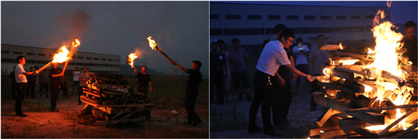隨著夜幕的降臨,公司常務(wù)副總章振邦為我們點(diǎn)起了篝火,大家圍著篝火歡歌,笑語,一聲聲爽朗的笑聲回蕩在整個(gè)金譽(yù)廠區(qū)。