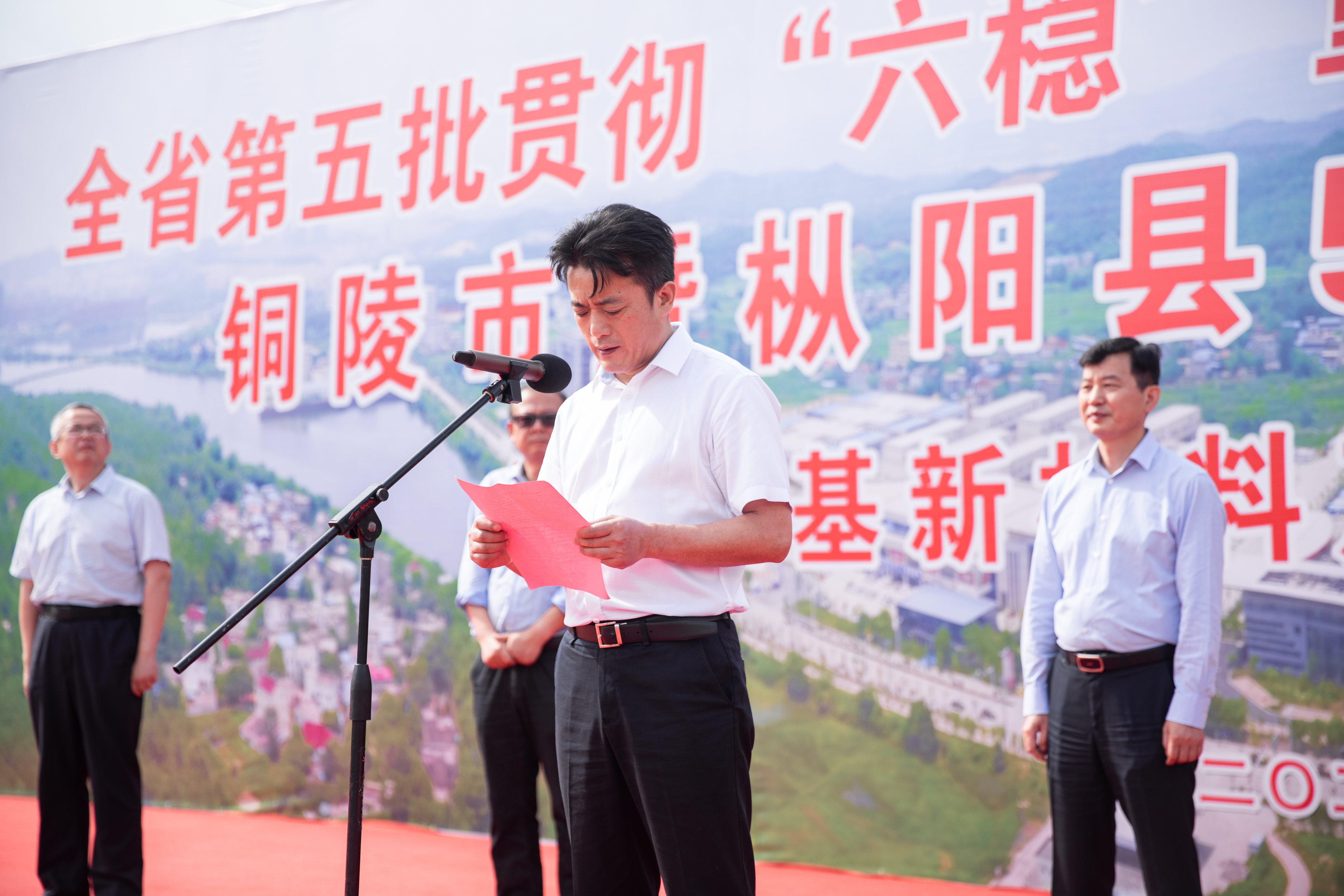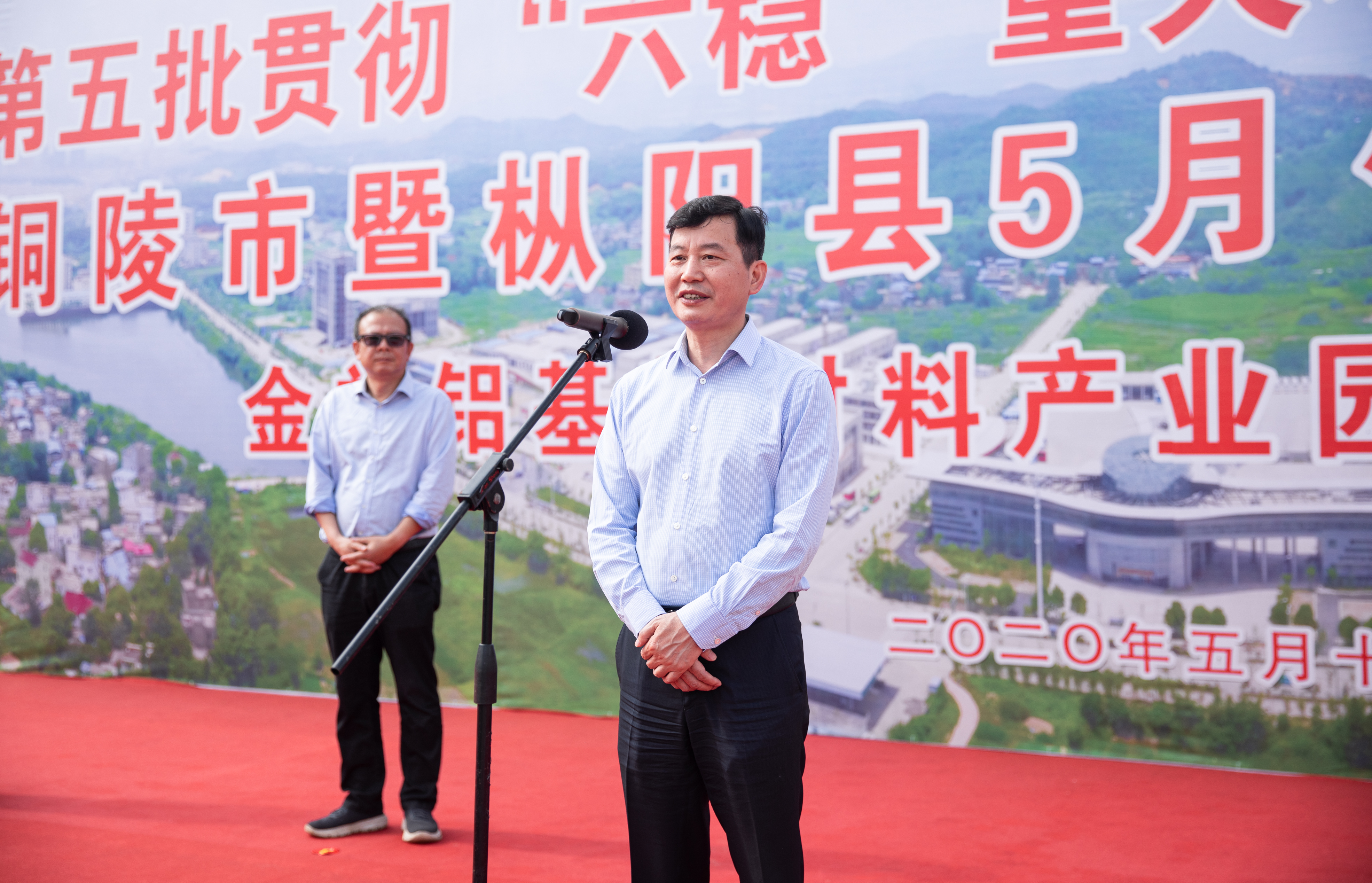 5月15日上午,全省貫徹落實(shí)“六穩(wěn)”銅陵市暨樅陽(yáng)縣5月份重大項(xiàng)目集中開(kāi)工活動(dòng)在樅陽(yáng)縣金譽(yù)鋁基新材料產(chǎn)業(yè)園項(xiàng)目現(xiàn)場(chǎng)舉行。市委常委、常務(wù)副市長(zhǎng)程雙林宣布項(xiàng)目開(kāi)工。